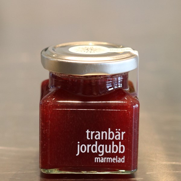 - Syltsocker (socker, pektin, citronsyra, kaliumsorbat), jordgubbar, tranbär, citron, vaniljstång.