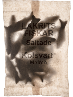 Saltade fiskar är glutenfri saltlakrits i den klassiska fiskformen ”the swedish fish”. Fantastiskt god som den är eller tillsammans med Kolsvarts ”Röding”.