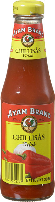 Ayams heta chilisås med smak av vitlök passar mycket bra i en wok eller varför inte som dippsås?
