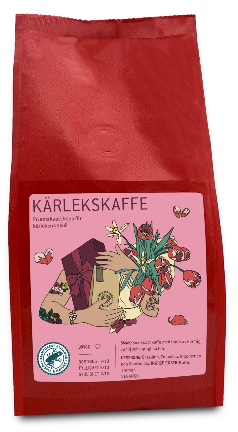 Ett kärt återseende av en ny-gammal vän, en smaksatt kombination som vi inte kunde släppa taget om. Vårt Kärlekskaffe är ett krämigt kaffe med milda toner av vanilj och syrliga hallon. Ett perfekt kaffe till den som betyder lite extra, kanske en vän, en käraste, en lärare eller varför inte till dig själv? Brygg detta kaffe och njut lite extra av dess goda smak.