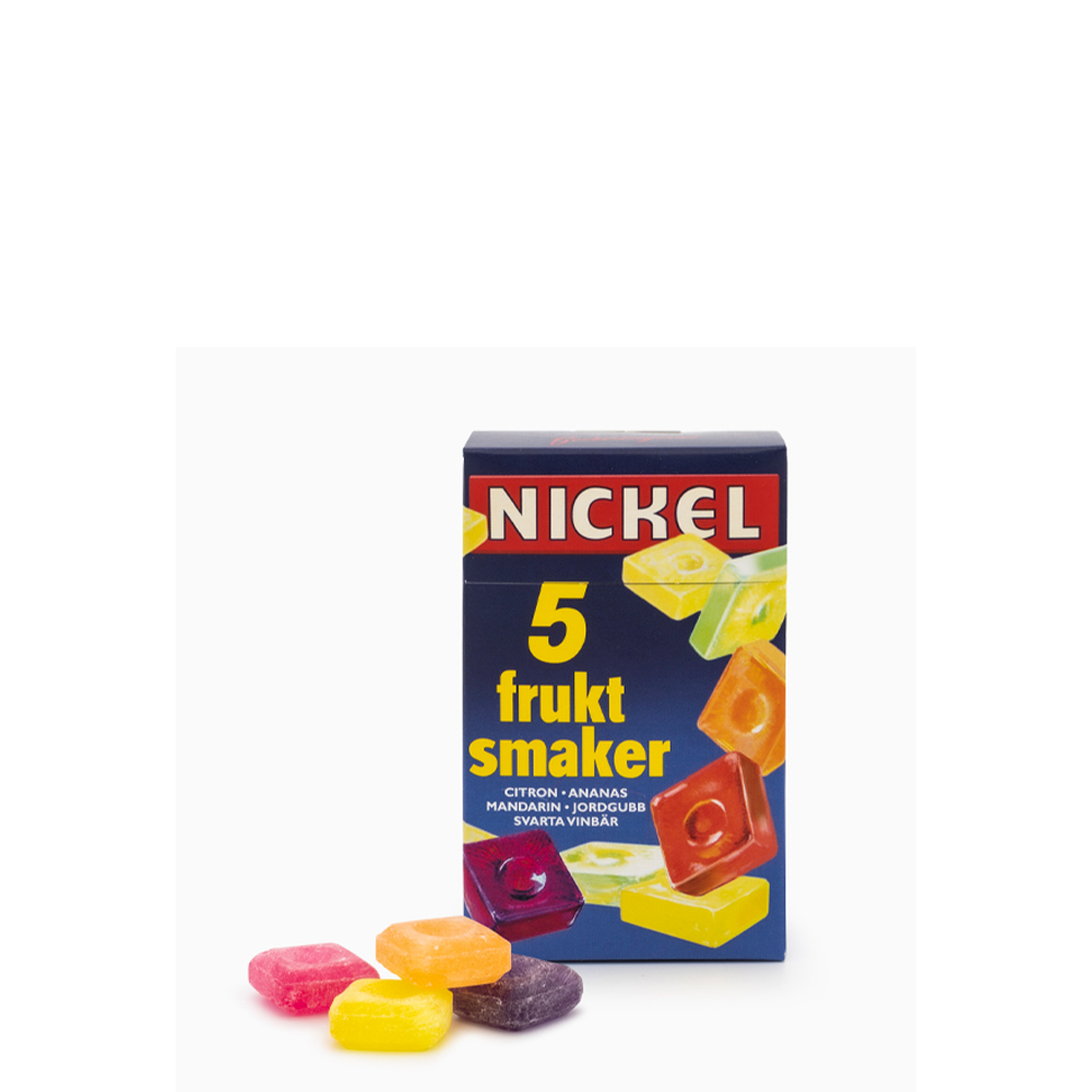 Nickel var förr ett givet inslag i varje biosalong i Sverige. Innehåller smakerna citron, ananas, mandarin, jordgubbe samt svarta vinbär.