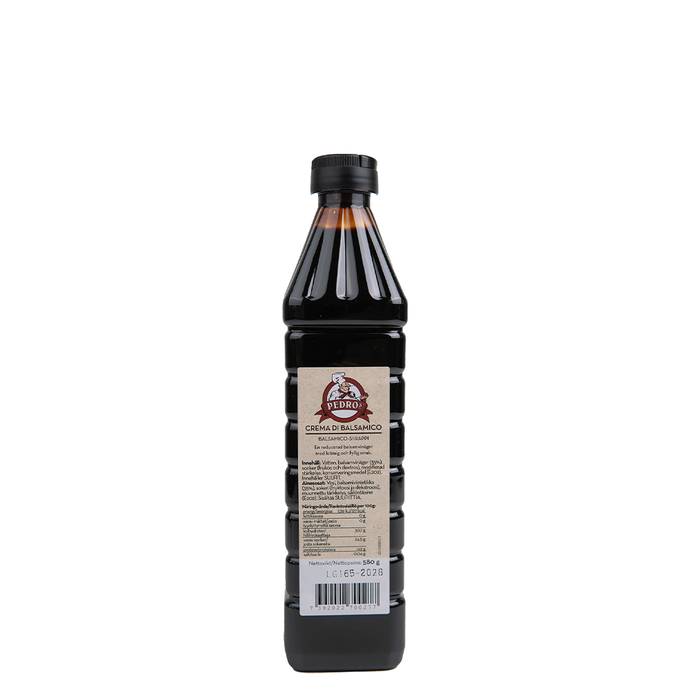 Crema di Balsamico görs på balsamvinäger och druvmust och används ofta i de professionella köken. Produkten är reducerad vilket bidrar till en krämig och fyllig produkt som kan ringlas över exempelvis kött, lagrad hårdost, grönsaker, frukt och glass! Resultatet blir inte bara en vacker dekoration, den fylliga smaken i kombination med sötman och syran i produkten kompletterar de övriga råvarorna perfekt.