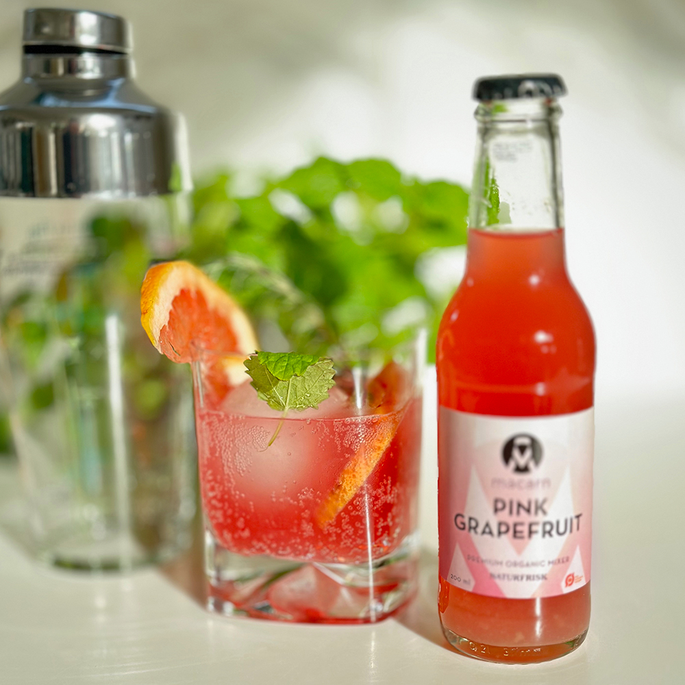 En fruktig och syrlig, ekologisk mixerläsk med grapefrukt och citron. Det går bra med många olika drycker. Prova det till exempel för en Pink Paloma, Greyhound Drink eller Grapefruit Gin Fizz. Men Macarn Pink Grapefruit kan också avnjutas som det är - iskall och läcker.