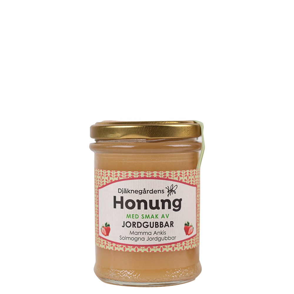 - Honung, ekologisk jordgubbsarom.
