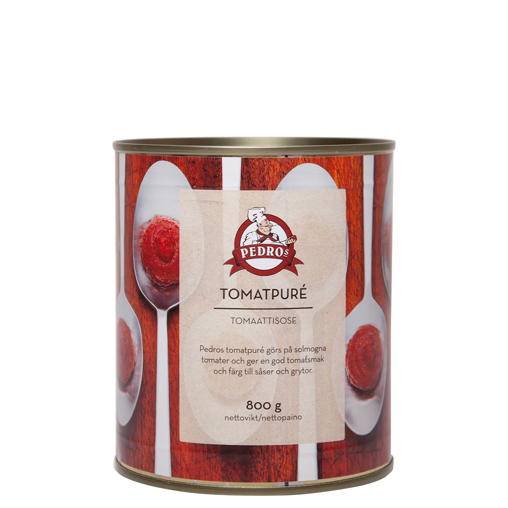 Pedros tomatpuré görs på solmogna tomater. Ger god tomatsmak och färg till såser och grytor.