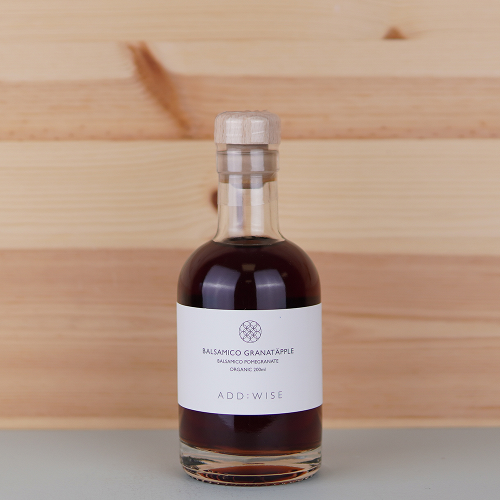 Ekologisk granatäpplejuice i kombination med EKOLOGISK must och vinäger skapar ett rubinrött, sötsurt och fruktigt elixir. En distinkt frisk smak för att klä säsongsbetonade sallader, marinader, vitt kött, fisk och skaldjur, fruktsallader.