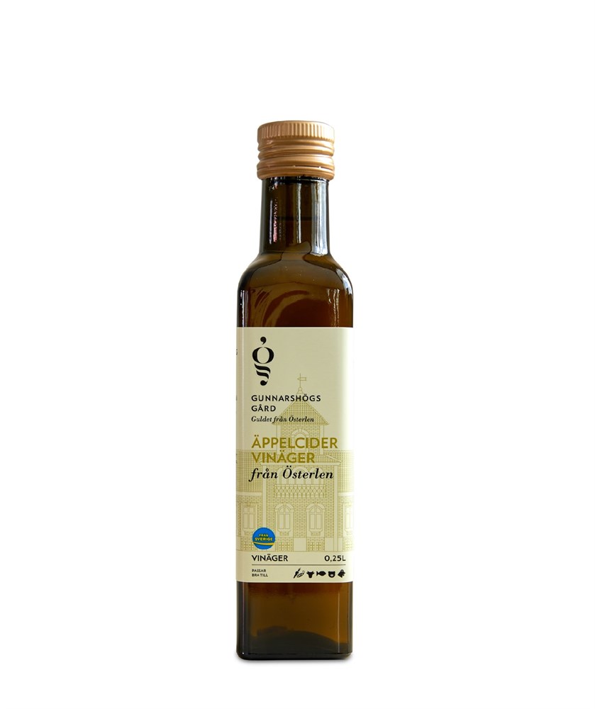 Vår äppelcidervinäger är tillverkad av must från skånska äpplen som får jäsa till cider och sedan bli vinäger. Det ger en rund och fin äppelcidervinäger med tydlig karaktär av äpple. Vinägern är god i marinader eller till en fräsch bönsallad med haricot verts, lök, fetaost och en vinägrett på citronolja och äppelcidervinäger.