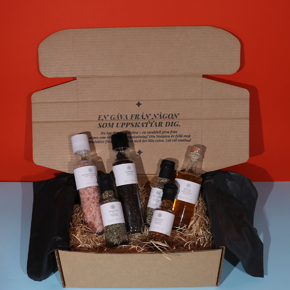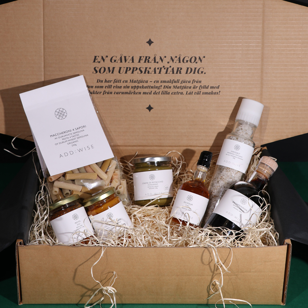 Vill du ge något speciellt till någon du tycker om eller glömde du bort kompisens födelsedag och vill visa lite extra omtanke? Vi erbjuder tjänsten Matgåva – en gåvobox fylld med härliga delikatesser. Den perfekta gåvan för att visa omtanke och uppskattning vid alla tillfällen! Gör som många andra och skicka en matkorg i present.