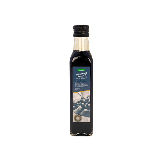 Balsamvinägern består av vinäger framställd på vin som blandas med den finaste druvmusten. Därefter lagras den och får sin mjuka smak med tydlig sötma och lätt markerad syrlighet. Syrahalt 6 %.