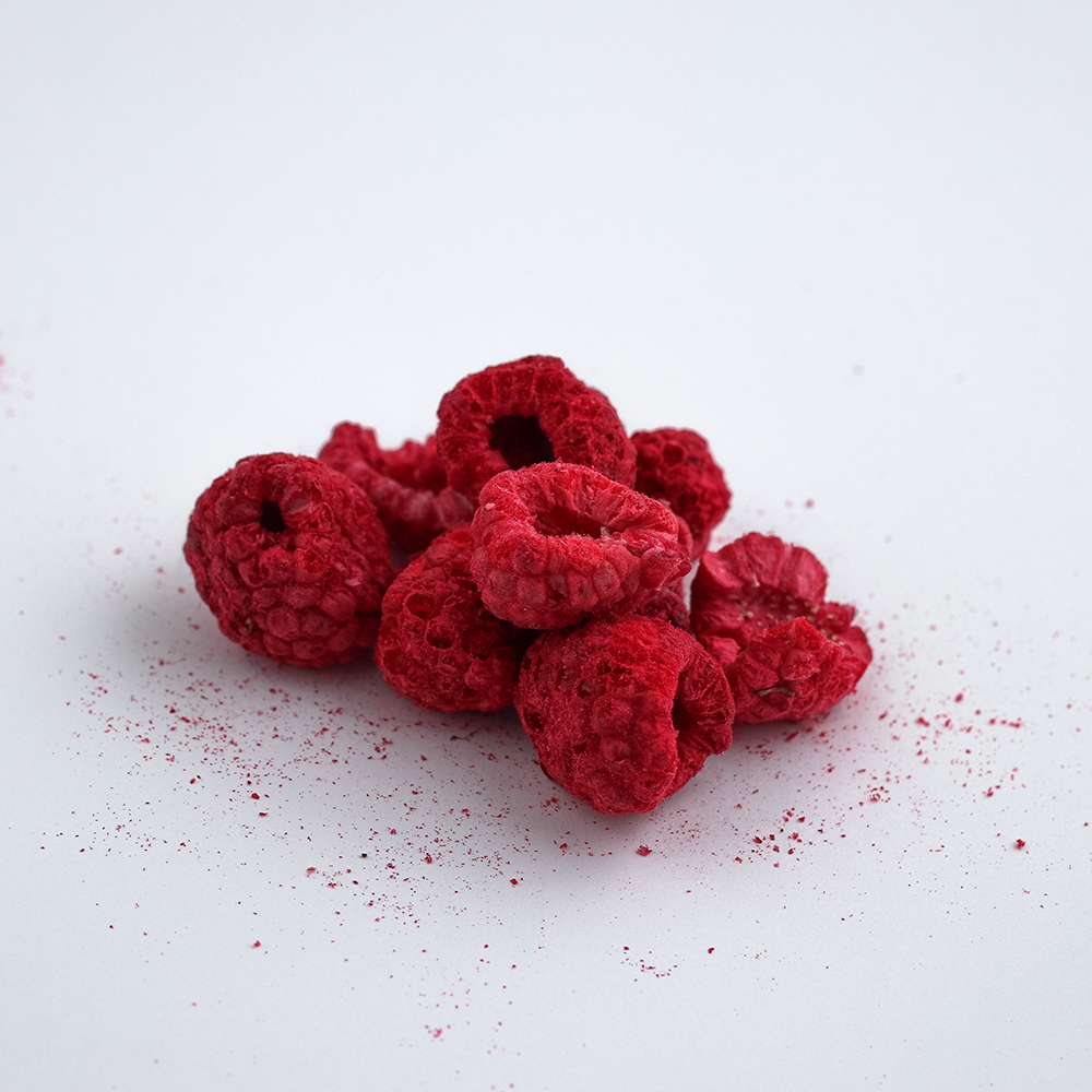 Frystorkade hela hallon tillför en syrlig och söt smak i din bakning. Bara din fantasi som sätter gränserna använda i muslin, vid brödbakning, eller varför inte praliner eller bara strössla strössel på bakelsen. När man frystorkar bär så gör det så att smaken behålls och även näringsinnehållet på ett fantastiskt sätt.