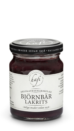 Björnbär Lakrits marmelad är ett spännande inslag till ostbrickan, passar även utmärkt till glass eller som smaksättare i olika bakverk.