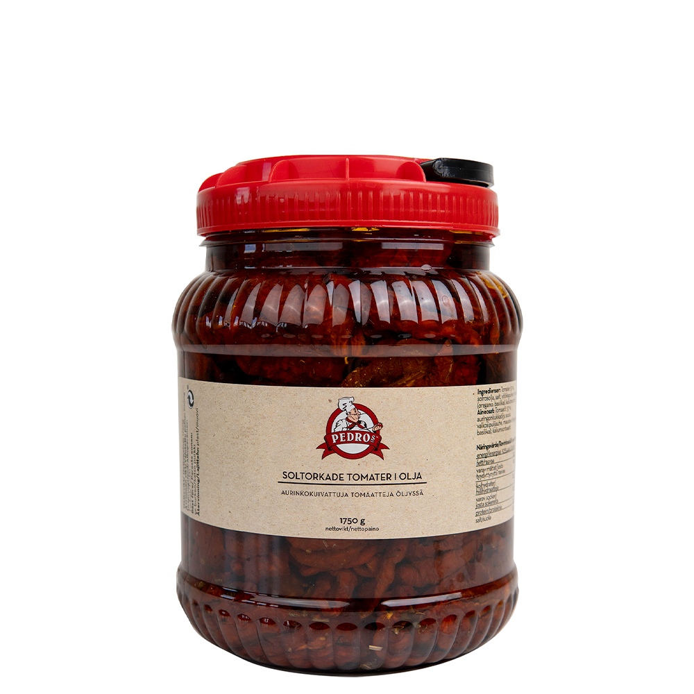 Solmogna tomater marinerade i olja och örter. Balanserad smak med bra tuggmotstånd.