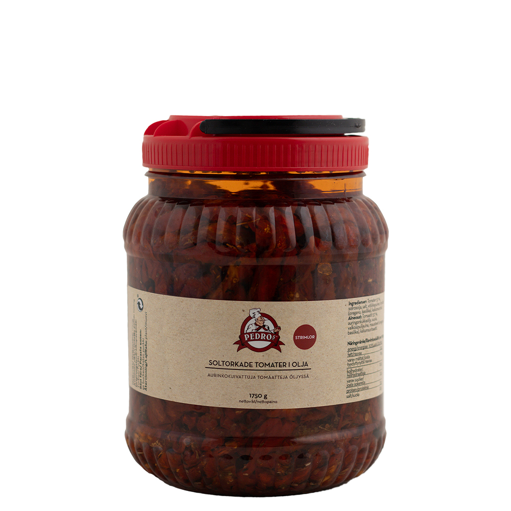 Solmogna strimlade tomater marinerade i olja och örter. Balanserad smak med bra tuggmotstånd.