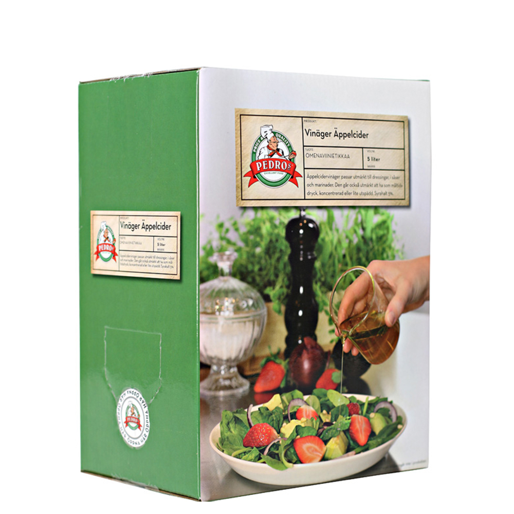 Äppelcidervinäger passar utmärkt till dressingar, i såser och marinader. Den går också utmärkt att ha som måltidsdryck utspädd i vatten. Syrahalt 5%.