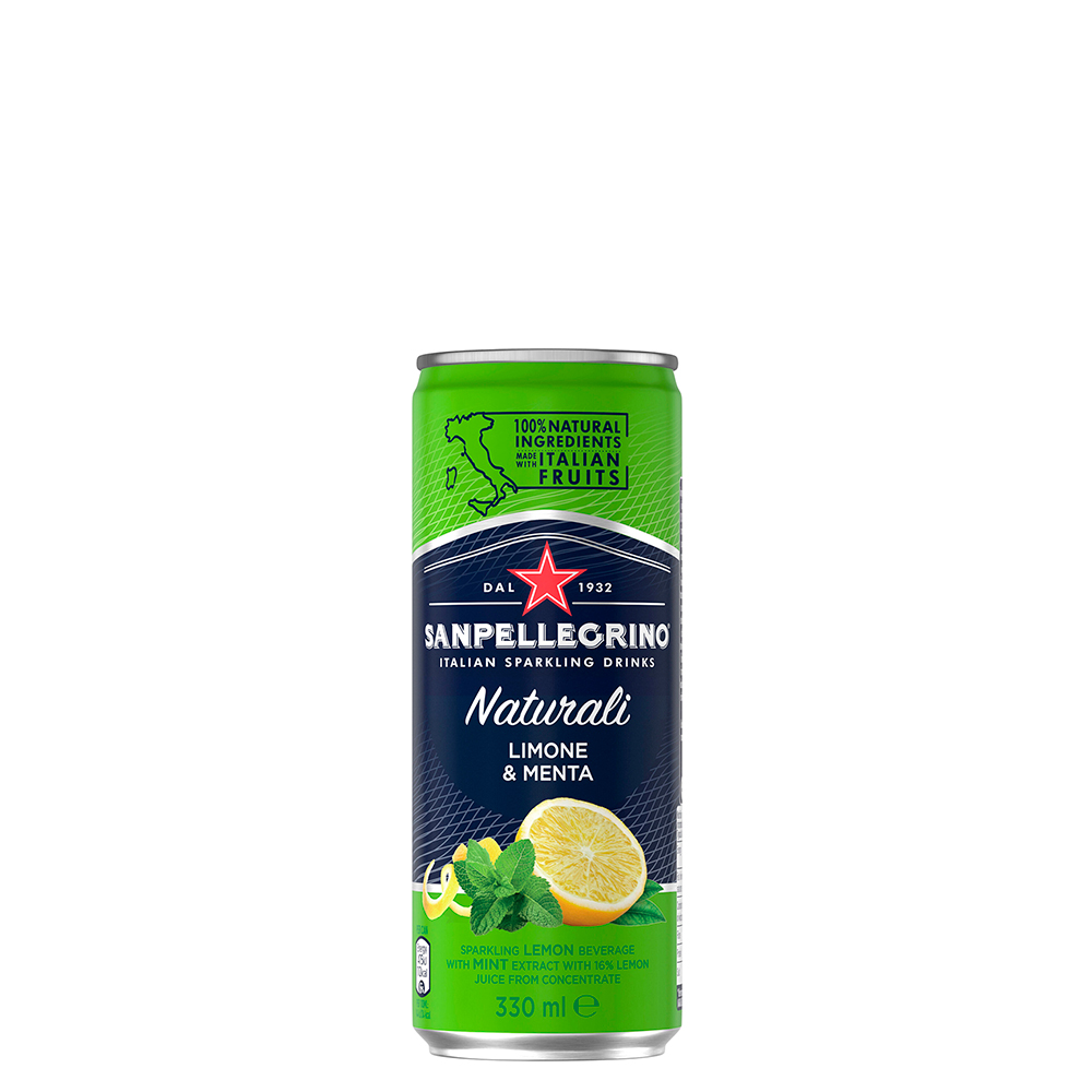 Lätt kolsyrad och mjuk gul med gröna undertoner i färgen, Sanpellegrino Limone & Menta är en autentisk premiumdryck med mycket personlighet som når alla dina sinnen. Fall in i dess aromatiska bukett av saftig citron med inslag av mynta när du tar en klunk av denna uppfriskande torra, 100 % naturliga citrondryck, sakkunnigt utformad för att skapa den perfekta balansen mellan sött och surt.