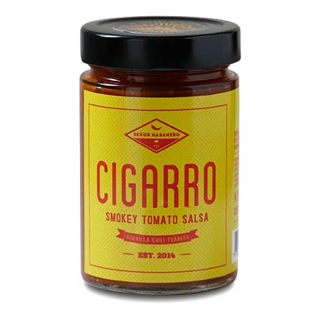 Cigarro är en rökig och rustik tomatsalsa med en rejäl dos av hetta. Cigarro gör sig utmärkt i en mustig gryta, i soppan eller varför inte till en bit kött? Passar även dig som vill uppgradera fredagstacosen till en ny och hetare nivå!