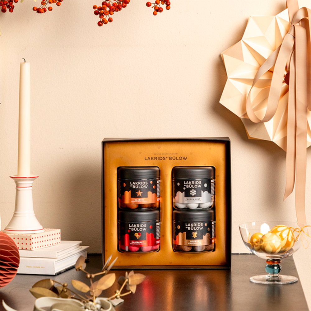 Skäm bort någon som är viktig för dig med utsökt dansk konfektyr och se deras ögon glittra av glädje. Denna BLACK BOX innehåller DOUBLE CHOCOLATE, FROZEN MINT, CRISPY RASPBERRY och CLASSIC CARAMEL, och är det perfekta valet för en magisk vinter.