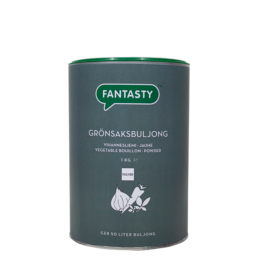 Buljong i pulverform. Smak av grönsaker. En mycket prisvärd pulverbuljong av hög kvalitet. I blindtester får produkten minst lika bra resultat som marknadsledaren.