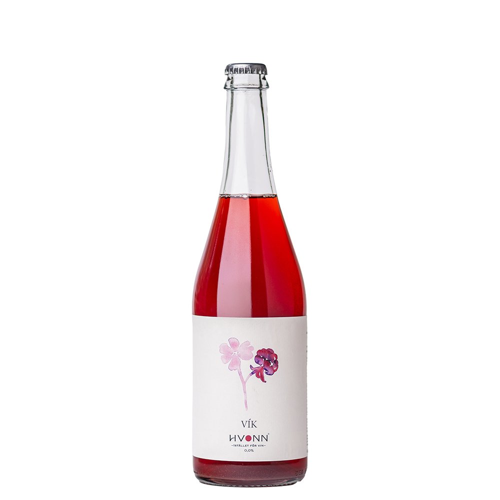 Vík är en mousserande alkoholfri dryck som hyllar Nordens röda bär, där åkerbäret står i centrum. De kallpressade bären ger djupa röda toner som lyfts av en rik mousse och kompletteras av örtiga inslag från gröna blad.