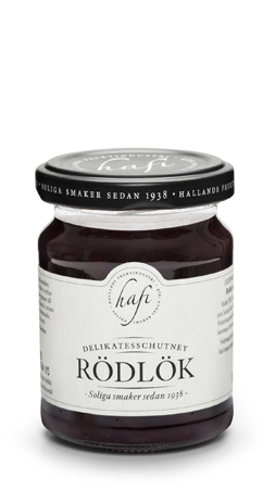 Hafis rödlökschutney passar till kött och grillad korv. Den är mycket god att blanda i crème fraiche eller som topping på en skinksmörgås.