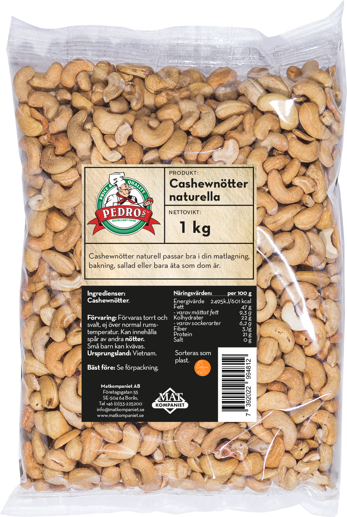 Cashewnötter naturell passar bra i din matlagning, bakning, sallad eller bara äta som dom är.